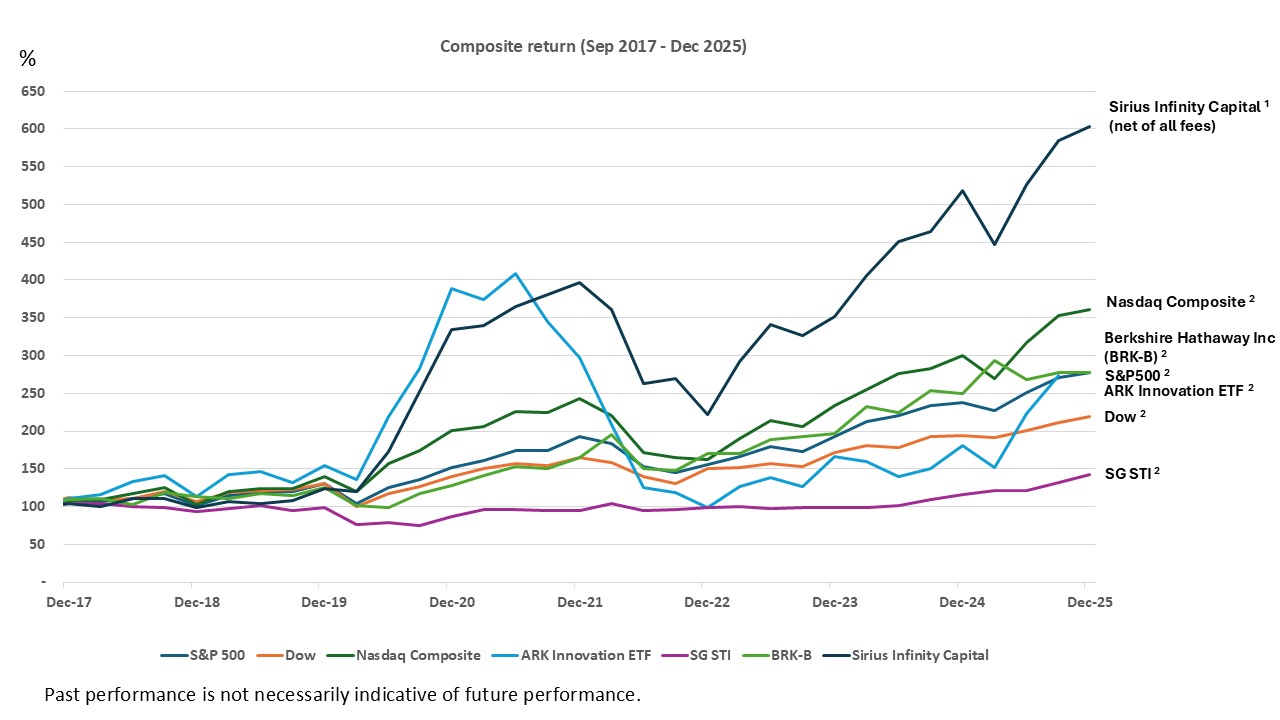 1 Sirius Infinity Capital: Phillip Securities Pte Ltd. The Average performance is denominated in SGD. Average performance returns (the “Performance”) for period more than 1 year are annualised. The Performance represent past performance and are not indicative of future or current performance which may be higher or lower. The Performance is based on unaudited results of client accounts and includes reinvestment of dividends and income and, is net of all fees except performance fees (if any) which are included only at year end. Individual portfolio returns may vary from the Performance returns.